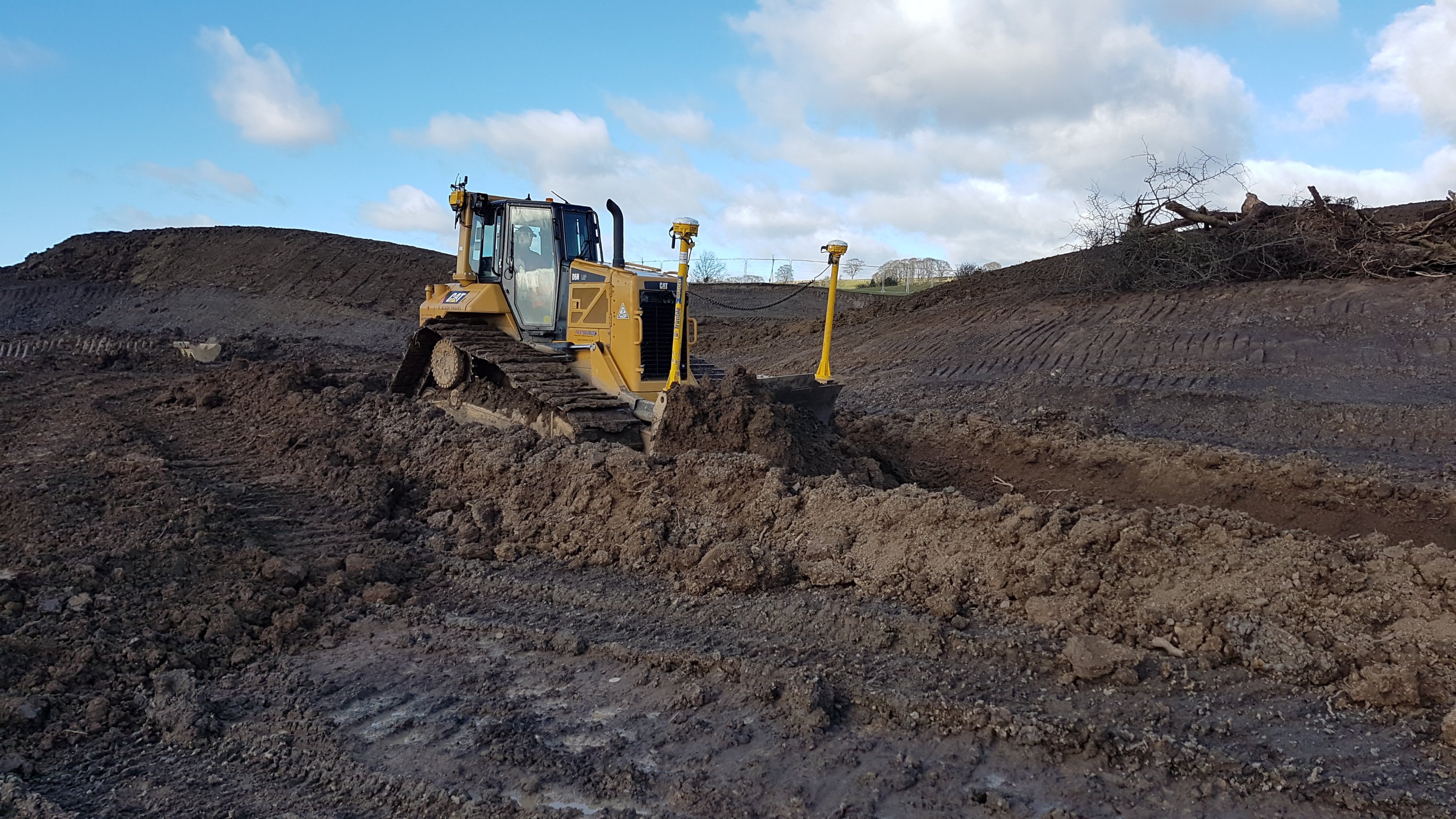 This week we commence final trim on plots and roadways. Being built on a hill side in Otley the site incorporates some fairly intricate soil and crib retaining structures so it was decided we’d operate this site with predominately GPS equipped machines running mainly Trimble but also one Leica system. We’ve had no compatibility issues with the two systems and are now in a position to press on ahead and make the most of what we hope will be some sunshine!!